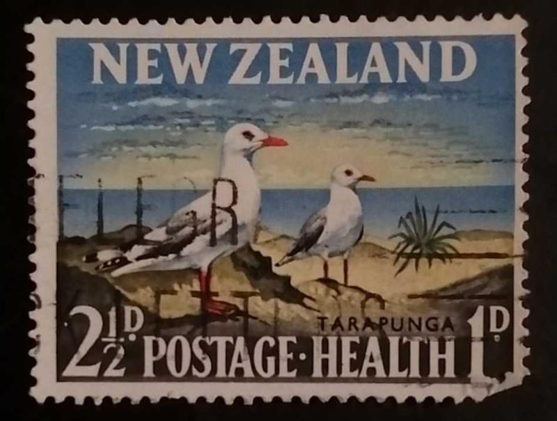 Yeni Zelanda'ya özgü bir martı türü olan Tarapunga (Kırmızı gagalı martı veya Gümüş martı) tasvir edilmiştir.