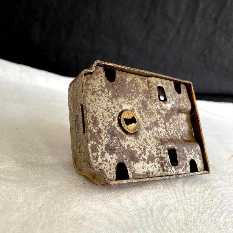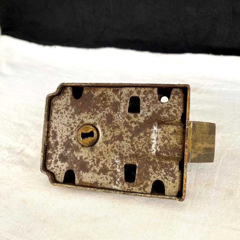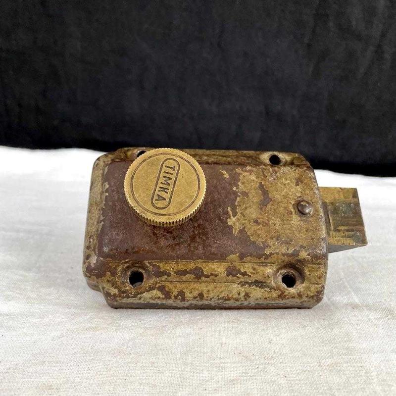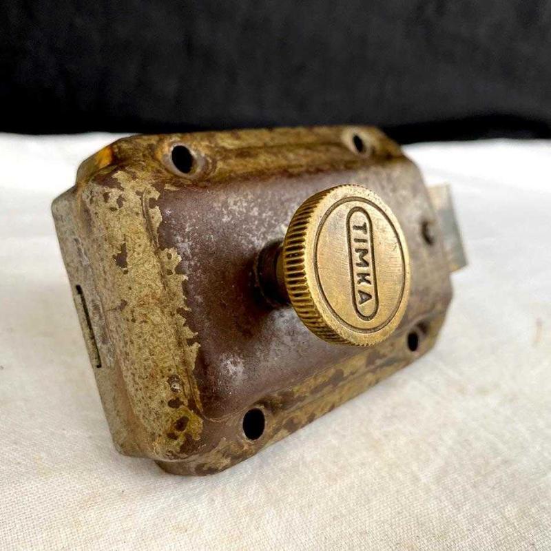 Türkiye’nin kilit sanayisindeki öncü markası TİMKA tarafından 1970’lerde İstanbul'da üretilen kilit, döneminin güven ve kalite sembolüydü. Tirajlı (sürgülü sistem) kilit, bugünün seri üretim plastik kilitlerin aksine, ağır dökme demir ve masif pirincin dayanıklılığına sahiptir. Pirinç döküm topuz üzerinde dairesel çerçeve içine işlenmiş yüksek kabartma "TİMKA" logosu bulunuyor. Kilit temiz ve çalışır durumdadır. Kabartma logolu pirinç topuzu ve doğal patinasıyla antika severler ve endüstriyel dekoratif aksesuar koleksiyonerleri için eşsiz bir parçadır. Malzeme ve Gövde: Ana gövde ve kilit sürgüsü (dili) dayanıklı ağır dökme demir üzerine kahverengi fırın boya, çevirme topuzu (knob) masif pirinçten üretilmiştir. Üretim Tarihi: 1970'ler İstanbul Montaj Yapısı: Dört noktalı vida sabitleme yuvaları ile yüksek güvenlikli montaj imkanı. 11x7x4 cm 320 gr