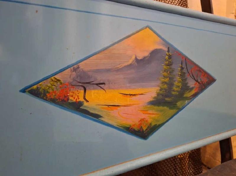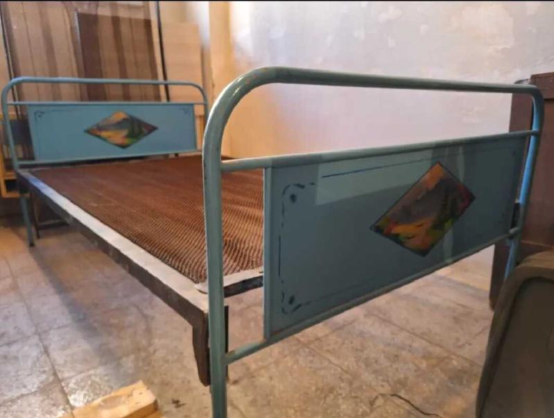 1970.lerden, Bulgaristan malı, yaylı somya demonte karyola başlık ve ayaklıkta el çizimi resim var. Orjinalinden böyle. demonte satınalmadan once mutlaka mesaj atınız...