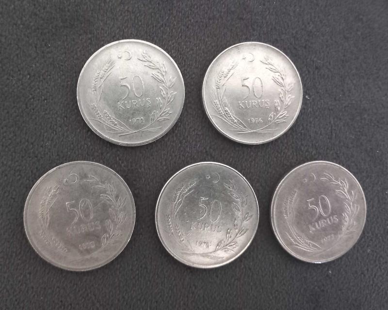 1970'LER 5 ADET 50 KURUŞ MADENİ PARA LOTU. KONDİSYON YÜKSEK KOLEKSİYONLUK