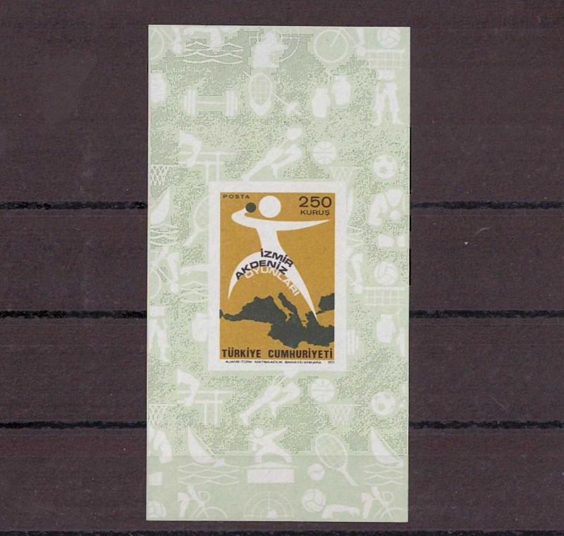 1971 İzmir Akdeniz Oyunları Hatıra Bloğu Mnh Lüks Blok Pulu TC1614 TP413 TC353