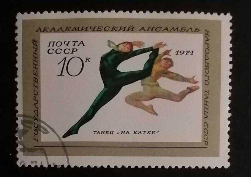 Görseldeki pul, 1971 yılında Sovyetler Birliği (SSCB) tarafından basılan "SSCB Devlet Akademik Halk Dansları Topluluğu" serisine ait bir posta puludur.