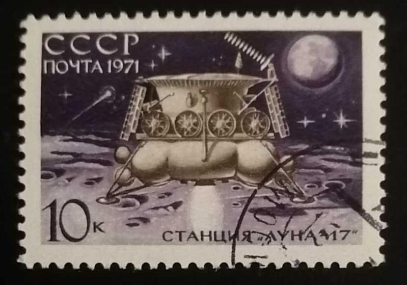 "Luna-17" (Луна-17) uzay istasyonu ve Ay yüzeyine iniş yapan ilk robotik araç olan Lunokhod-1. Bu damgalı (kullanılmış) kondisyondaki bir pulun tekil piyasa değeri yaklaşık 5 TL ile 20 TL arasındadır.
