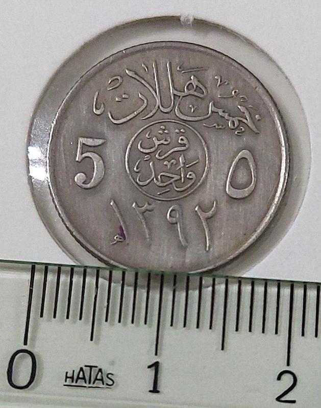 1972 (1392) SUUDİ ARABİSTAN 5 HALALA ORİJİNAL MADENİ PARASIDIR. MADENİ NİKEL-BAKIR ALAŞIMIDIR. ÇAPI;19,5 MM DİR. AĞIRLIĞI;2,5 GRAM, KALINLIĞI;1,3 MM DİR. KONDİSYONU ÇİLALTI-ÇOK ÇOK TEMİZ OLARAK DEĞERLENDİRİLEBİLİR. RESMİNİ GÖRDÜĞÜNÜZ ÜRÜN AYNEN GÖNDERİLİR. TÜM ÜRÜNLERİMİZE BAKMANIZ MENFAATİNİZEDİR. SAYGILARIMIZLA.