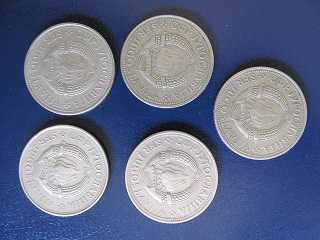 1 ADET 1972, 2 ADET 1975, 1 ADET 1976 VE 1 ADET 1980 YILI OLMAK ÜZERE TOPLAM 5 ADET YUGOSLAVYA 5 DINARA