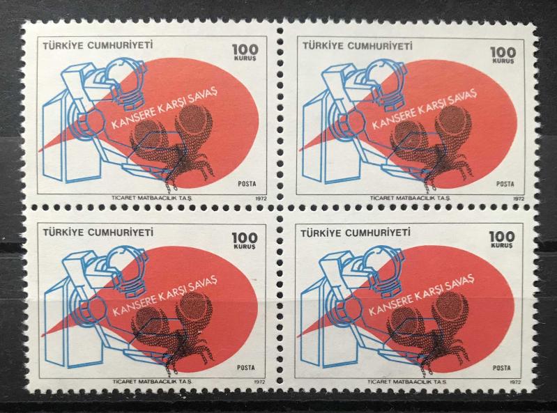 1972 KANSERE KARŞI SAVAŞ DAMGASIZ DÖRTLÜ BLOK, p379b, dün satışa sunulmuştur.