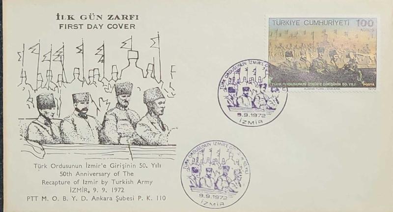1972 Türk Ordusunun İzmir'e Girişinin 50. Yılı - FDC - PTT M.O.B.Y.D., 1 yıl önce satışa sunulmuştur.