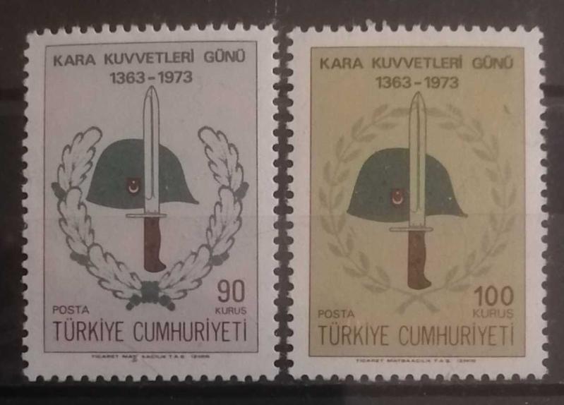 Konu: Kara Kuvvetleri Günü (Türk Kara Kuvvetleri'nin kuruluşunun 610. yıl dönümü). Piyasa Değeri: Fotoğraftaki pullar damgasız (temiz) görünüyor. Bu iki pulun toplam piyasa değeri şu anki koleksiyon pazarında yaklaşık 30 TL ile 50 TL arasındadır.