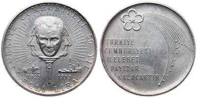 1973 - Türkiye Cumhuriyeti'nin 50.Yılı ''Elli Lira'' Gümüş Hatıra Para, 4 gün önce satışa sunulmuştur.