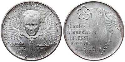 1973 - Türkiye Cumhuriyeti'nin 50.Yılı ''Yüz Lira'' Gümüş Hatıra Para, 4 gün önce satışa sunulmuştur.