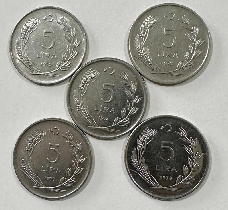 1974-1975-1976-1977-1979 TC 5 lira 5 adet madeni para ÇilAltı, 6 gün önce satışa sunulmuştur.