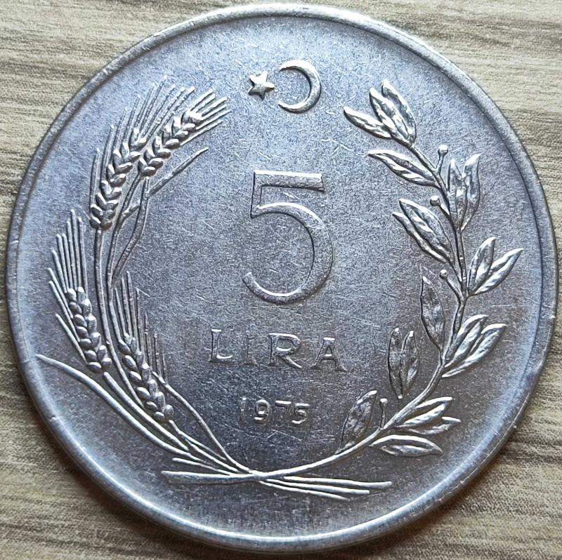 1975 Tedavül 5 Lira Beş Lira Türk Lirası Fotoğraftaki ürün gönderilecektir. Fatura kesilmeyecektir.