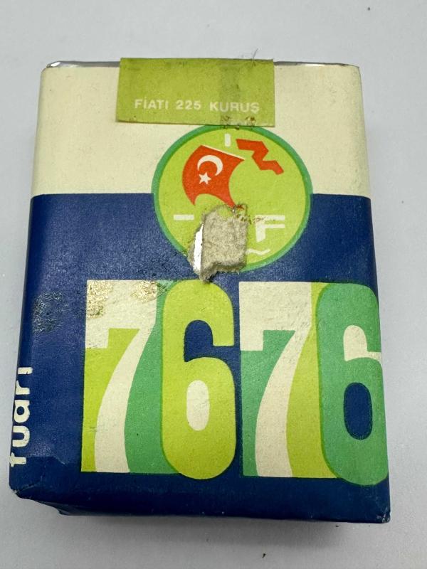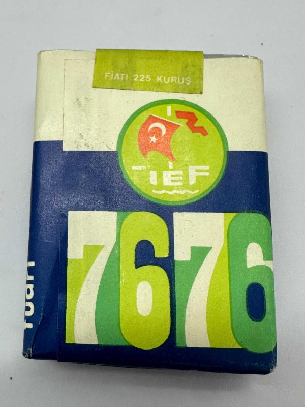 1976 İzmir Enternasyonal fuarı Tekel midi sigara pakedi dolu açılmamış kolleksiyonluk başlıklı antika/koleksiyon objesi Türkiye menşe’lidir. 1960-1979 arası dönemine aittir.