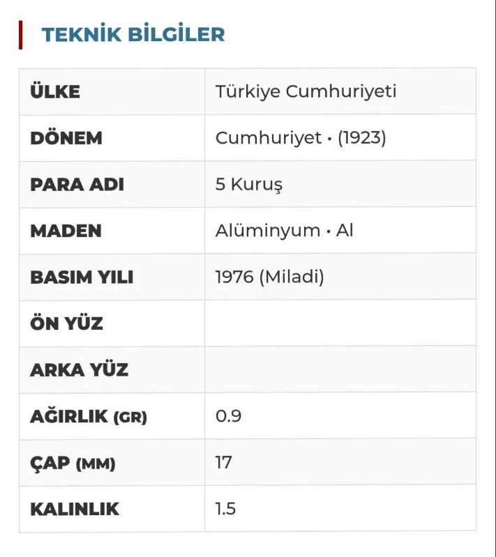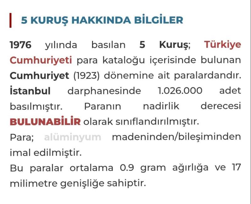 1976 TARİHLİ ALÜMİNYUM 5 KURUŞ, bir ay önce satışa sunulmuştur.
