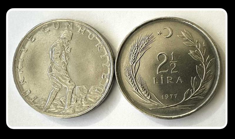 1977 - 2,5 LİRA ÇİL (T.C Ters/Düz 2’li Takım) TCM77 NÜMİSMANİA YILDIRIM KOLEKSİYON KOLEKSİYONUMDAN ÇIKMADIR
