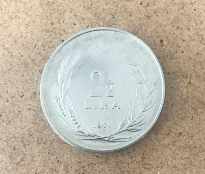 1977 CUMHURİYET MADENİ PARALARI 2,5 LİRA ÇİLLL KENAR YAZILARI DÜZ