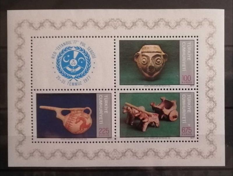 Bu görseldeki parça, 21-31 Temmuz 1977 tarihlerinde İstanbul'da düzenlenen RCD "İstanbul '77" Pul Sergisi anısına basılmış bir blok puldur. Blok pullar, koleksiyoncular için özel olarak tasarlanan ve pulların üzerinde bulunduğu kağıdın kenarlarındaki süslemelerle (bordür) birlikte saklanan değerli parçalardır.