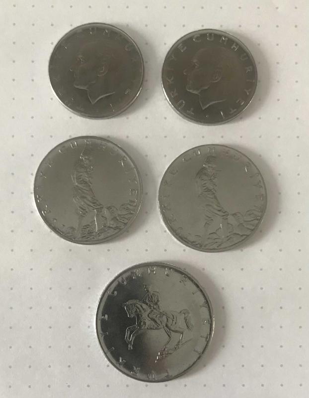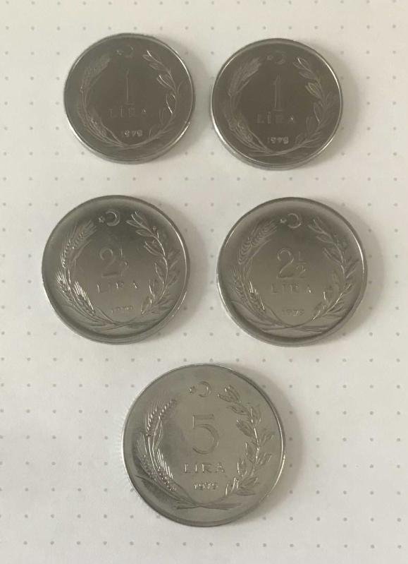 1979 CUMHURİYET MADENİ PARALARI 1 LİRA ,2,5 LİRA ,5 LİRA ÇİLLL ( 1 VE 2,5 LİRA KENAR YAZILARI TERS/DÜZ ) ÇİL DURUMDA