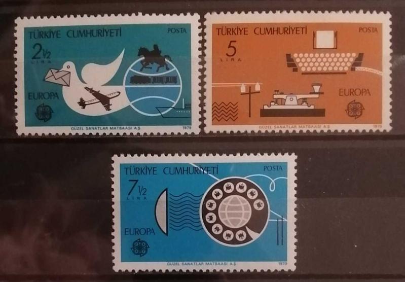Görseldeki pullar, koleksiyonunuzda bir yıl ileriye geçtiğimizi gösteriyor. Bu pullar, 1979 yılında "EUROPA CEPT" serisi kapsamında basılan ve "Haberleşme ve Posta Tarihi" konusunu işleyen 3 değerli tam seridir.