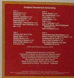 2 PLAKTA ÇOK TEMİZ .. A1 Aquarius 4:47 A2 Sodomy 1:29 A3 Donna / Hashish 4:20 A4 Colored Spade 1:33 A5 Manchester 1:57 A6 Abie Baby / Fourscore 2:43 A7 I'm Black / Ain't Got No 2:24 A8 Air 1:26 B1 Party Music 3:25 B2 My Conviction 1:47 B3 I Got Life 2:15 B4 Frank Mills 2:39 B5 Hair 2:42 B5 L.B.J. (Initials) 1:07 B7 Electric Blues / Old Fashioned Melody 3:53 B8 Hare Krishna 3:24 C1 Where Do I Go? 2:48 C2 Black Boys 1:11 C3 White Boys 2:35 C4 Walking In Space 6:13 C5 Easy To Be Hard 3:39 C6 3-5-0-0 3:49 D1 Good Morning Starshine 2:24 D2 What A Piece Of Work Is Man 1:39 D3 Somebody To Love