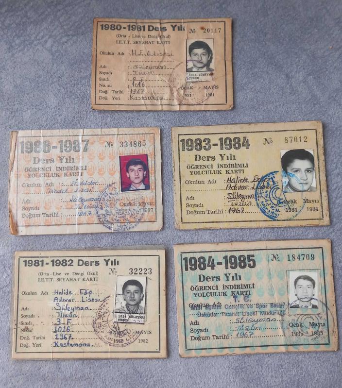 1980-81-83-84-86 TARİHLİ 5 ADET İETT ÖĞRENCİ İNDİRİM KARTI. FOTOĞRAFTA GÖRÜLDÜĞÜ GİBİDİR KOLEKSİYONLUK NADİR, dün satışa sunulmuştur.