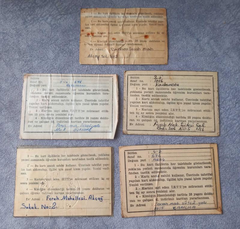 1980-81-83-84-86 TARİHLİ 5 ADET İETT ÖĞRENCİ İNDİRİM KARTI. FOTOĞRAFTA GÖRÜLDÜĞÜ GİBİDİR KOLEKSİYONLUK NADİR