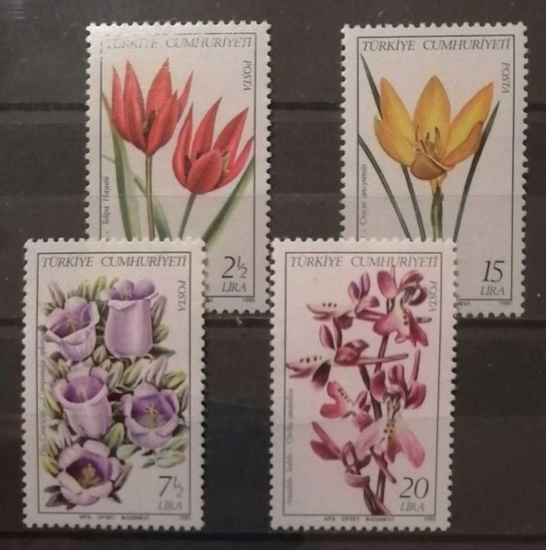 Bu harika görselli pullar, Türkiye Cumhuriyeti'nin 1980 yılında çıkardığı "Anadolu Çiçekleri" (veya yabani çiçekler) anma pulları serisidir.