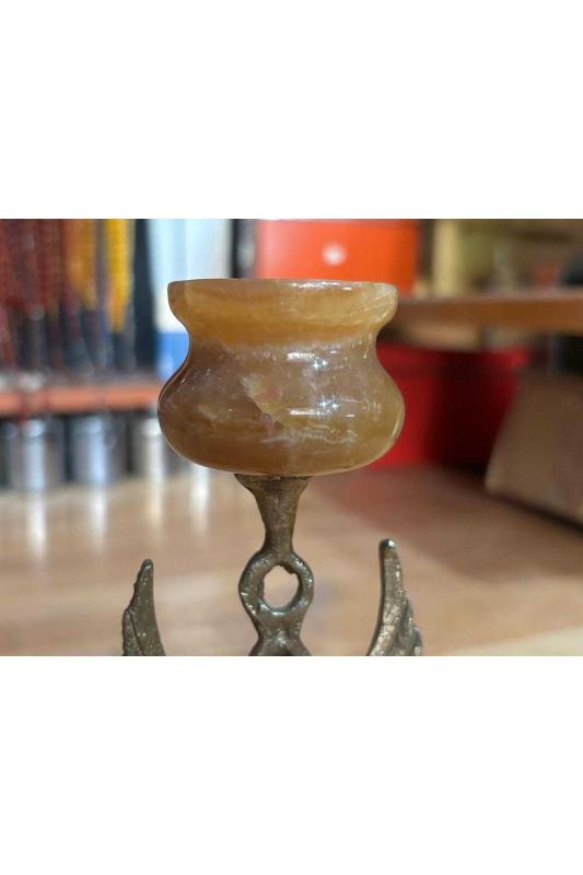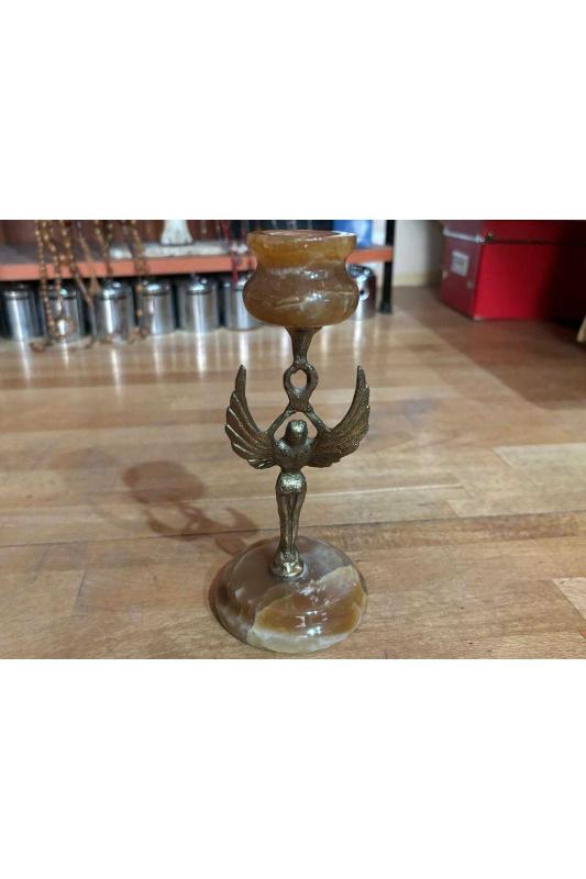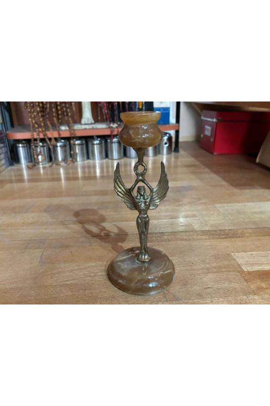 1980 ler melek figürlü pirinç ve mermer şamdan 19 cm boyunda başlıklı antika/koleksiyon objesinin menşei belirtilmemiştir. Objenin ait olduğu dönem bilinmeketedir.