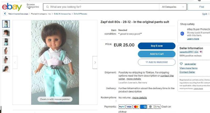 1980'LERDEN ZAPF CREATİONS DAMGALI VİNTAGE VİNİL (ET) BEBEK. UZUNLUĞU 28 CM. ENSESİNDE ZAPF DAMGASI YER ALIYOR. HİÇBİR HASARA VEYA KUSURA SAHİP DEĞİL. 4. FOTODA DEKORATİF AMAÇLI YER ALAN OBJELER ÜRÜNE DAHİL DEĞİLDİR. 7. VE 8. FOTOLAR ÜRÜNÜN KENDİSİ DEĞİLDİR; ÜRÜNÜN YURTDIŞI SATIŞ SİTELERİNDEKİ İLANLARDAN ÖRNEK OLMASI AMAÇLI ALINMIŞ BENZERLERİNİN FOTOLARIDIR. ****** FOTOĞRAFTA GÖRÜLEN ÜRÜN GÖNDERİLECEKTİR ******