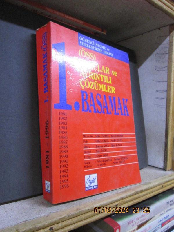 1981 - 1996 ÖSS SORULAR VE AYRINTILI ÇÖZÜMLER 1. BASAMAK - MATEMATİK: SALİH CİVELEK, RUHİ ÖZDEMİR..FİZİK: GÜLSEN ÖZGÜL, NECDET ERGÜN..KİMYA: DURSUN KAYA, OĞUZ ALATLI..BİYOLOJİ: NAKİ ÖZGÜL..TÜRKÇE: ERHAN EKİNCİ..SOSYAL BİLİMLER: FAİK GÜNALTAY, TURHAN ÖZDİLEK, İSA DENİZ, NEVZAT AKSOY..ÖZGÜL YAYINLARI İST. 618 SAYFA..TEMİZ.+