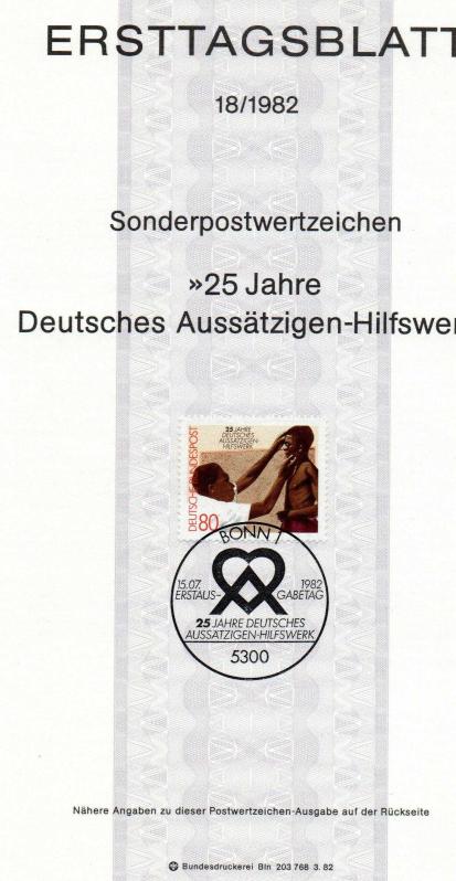 1982-18 ALMANYA ETB Alman cüzzamlılara yardım kuruluşu 25.yılı, 10 ay önce satışa sunulmuştur.