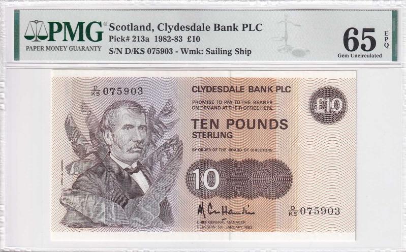 1982-83 İskoçya 10 Pounds ''Clydesdale Bank'' Nadir PMG65 ÇİL Diğer ürünlerimize bakmayı unutmayın ;)