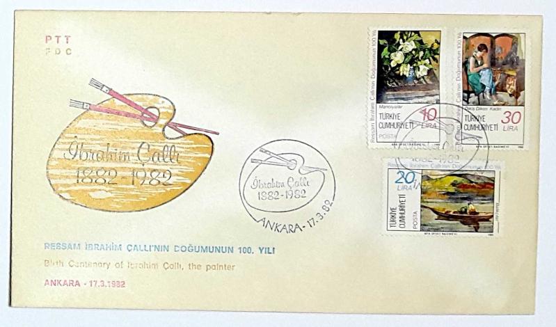 1982 FDC Ressam İbrahim Çallı'nın Doğumunun 100. Yılı, Ankara, 17.03.1982, PTT M.O.B.Y.D. İlk Gün Zarfı (FDC-298), en son 3 ay önce güncellenmiştir.