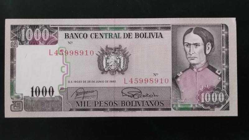 1982 YILI BOLİVYA 1000 BOLİVİANOS HİÇ KULLANILMAMIŞTIR., 25 gün önce satışa sunulmuştur.