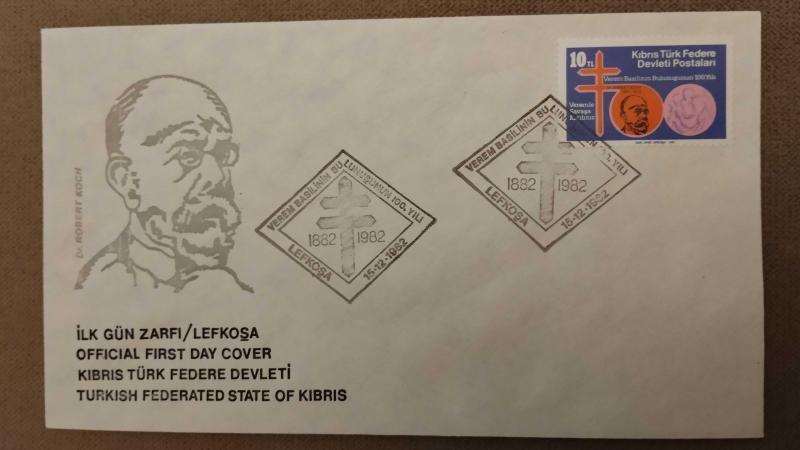 1982 YILI KKTC Verem Basilinin Buluşunun 100 yılı Robert Koch İLK GÜN ZARFI KULLANILMAMIŞ