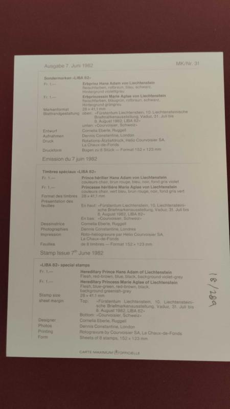 1982 YILI LİECHTENSTEİN PUL SERGİSİ LİBA 82 VADUZ MAXİMUM KART