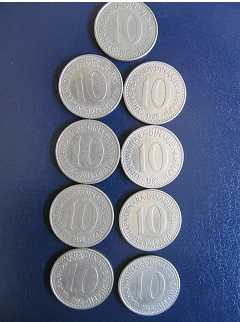 1 ADET 1983, 4 ADET 1984 VE 4 ADET 1985 YILI OLMAK ÜZERE TOPLAM 9 ADET YUGOSLAVYA 10 DINARA