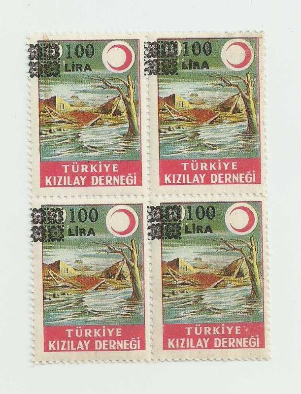 ** 1983 TÜRKİYE KIZILAY DERNEĞİ SÜRŞARJLI 100 LİRALIK DÖRTLÜ BLOK YARDIM PULU ** Gayet temiz durumda,zamkı makul,dörtlü blok halinde Kızılay 100 kuruşluk sürşarjlı pulları...