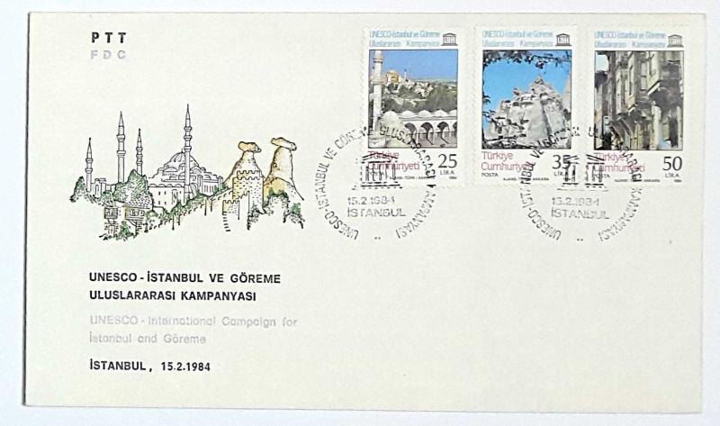 1984 FDC UNESCO - İstanbul ve Göreme Uluslararası Kampanyası, İstanbul, 15.02.1984, PTT M.O.B.Y.D. İlk Gün Zarfı (FDC-329) Fotoğraflar gönderilecek ürüne aittir. Fatura gönderilmeyecektir. Kargo bilgisi ve diğer ürünlerim için mağazama göz atabilirsiniz.