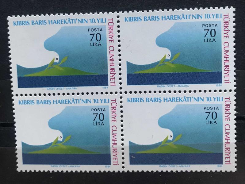 1984 KIBRIS BARIŞ HAREKATI'NIN 10.YILI SERİSİ DAMGASIZ DÖRTLÜ BLOK MNH p389b, 20 gün önce satışa sunulmuştur.