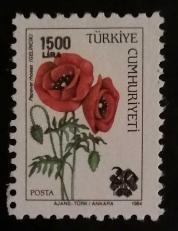 Paylaştığınız görseldeki pul, Türkiye Cumhuriyeti tarafından 1984 yılında basılan "Çiçekler" (Flora) serisine ait bir pulun üzerine 1500 Lira sürşarj (ek baskı) yapılmış halidir. piyasa değeri genellikle 10 TL ile 15 TL arasındadır.