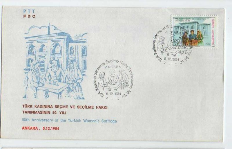 1984 Türk kadınına seçme ve seçilme hakkı tanınmasının 50. yılı FDC - İLK GÜN ZARFI