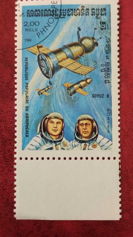 1984 YILI KAMBOÇYA SOYUZ-8 UYDUSU BANDALETLİ DAMGALI ŞARNİYERSİZ