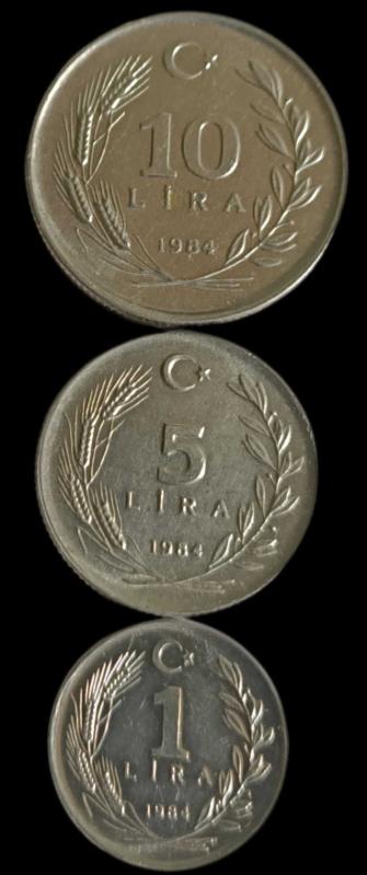1984 Yılı 1 5 10 Lira Çil tedavül Set