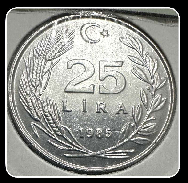 NÜMİSMANİA YILDIRIM KOLEKSİYON GARANTİSİ İLE İADESİ VARDIR 1985-89 arası basılan alüminyum 25 Lira’lar 5 defa basılmış olup; tura tarafında büst olarak ATATÜRK resm edilmiştir. En değerli olanı 1989 yılında basılandır