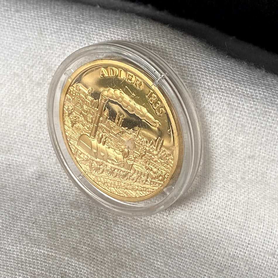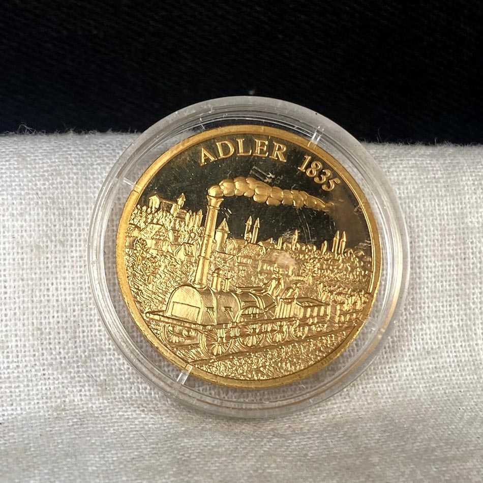 Jeton, Göde (Bayerisches Münzkontor) tarafından demir yolu tarihinin dönüm noktalarından "Adler" (Kartal) lokomotifinin anısına üretilmiş özel madalyondur. 1835 yılında Almanya'da raylara inen bu ilk lokomotifin 150. yıl dönümü için 1985'de basılmıştır. Ön Yüz (Adler 1835): 7 Aralık 1835'teki efsanevi seferi simgeler. Lokomotifin dumanı ve arkasındaki tarihsel şehir silüeti, dönemin sanayi atılımını yansıtan yüksek kabartma bir işçiliğe sahiptir. Arka Yüz (Mekanik Tasvir): Modern lokomotiflerin atası sayılan erken dönem buharlı makine tasarımı yer alır. Çarkların, pistonların ve mekanik aksamın netliği, endüstriyel estetiği ön plana çıkarır. Hatıra jeton, proof (aynalı) yüzey kalitesinde, korunmuş şeffaf kapsülündedir. 10 gr Çap: 3.5 cm