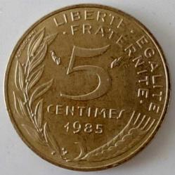 1985 FRANSA 5 CENTİMES (FRANSIZ FRANGI) ORİJİNAL MADENİ PARASI 1F2RR1 NADİR