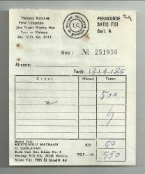 1985 MALATYA, MEHMET KARAKUŞ FIRAT LOKANTASI PERAKENDE SATIŞ FİŞİ..., en son 5 ay önce güncellenmiştir.