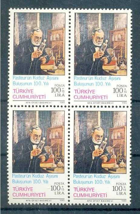 1985 - PASTEUR ÜN KUDUZ AŞISINI BULUŞUNUN 100. YILI DÖRTLÜ BLOK .... TÜM ÜRÜNLERİMİZ ALICISINA FATURASI İLE GÖNDERİLECEKTİR.....