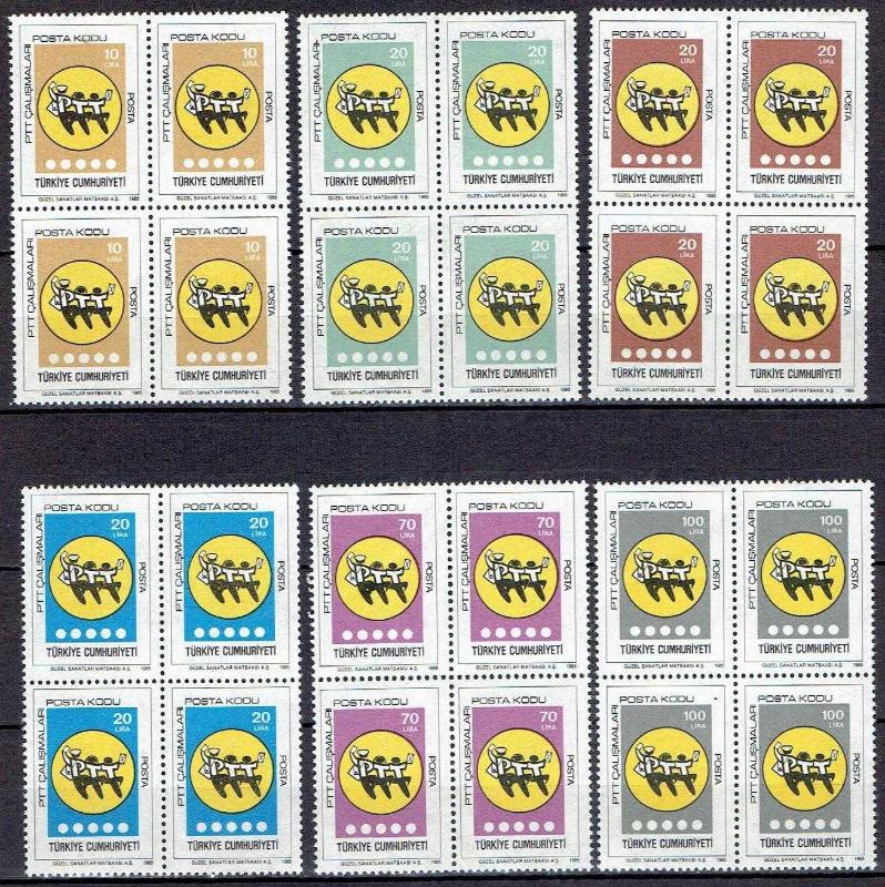 1985 PTT ÇALIŞMALARI (POSTA KODU) KONULU TAM SERİ MNH DÖRTLÜ BLOK SÜREKLİ PULLAR. SATIŞTA OLAN DİĞER PULLARIMA DA BAKINIZ..